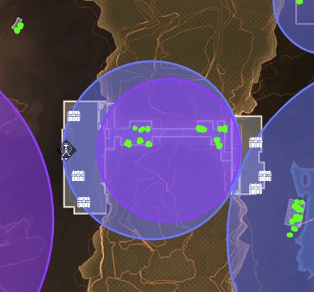 Bunker and its surrounding area on the map, including loot spawns, loot rarity circle, and gameplay features.