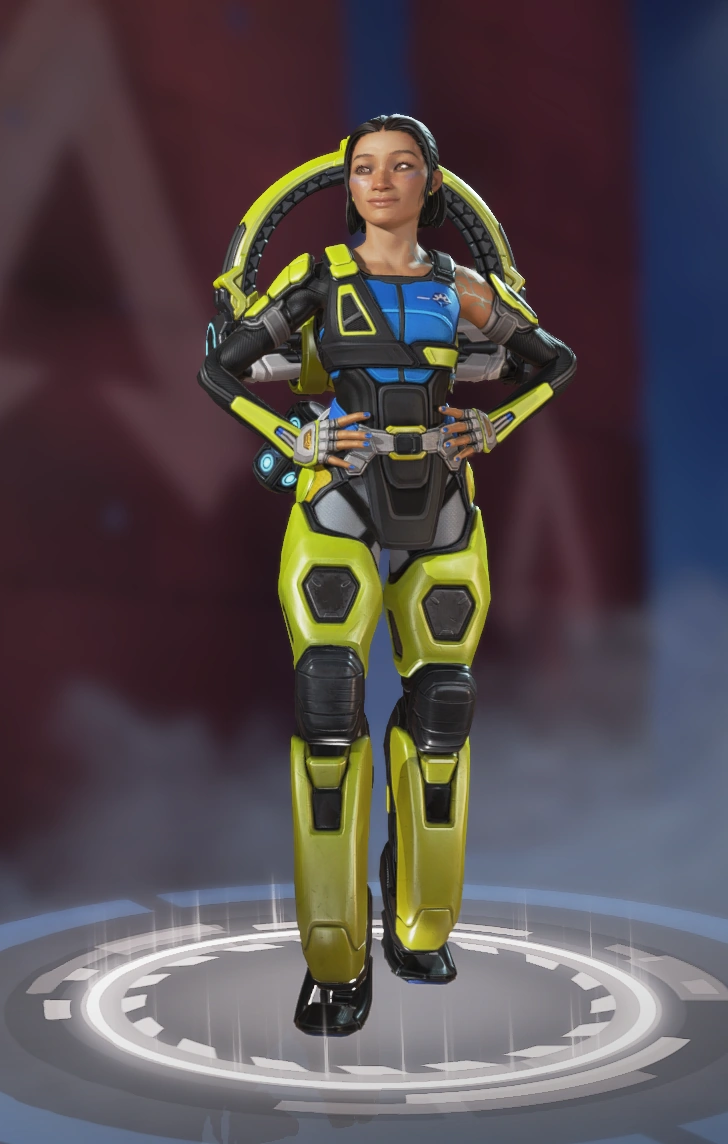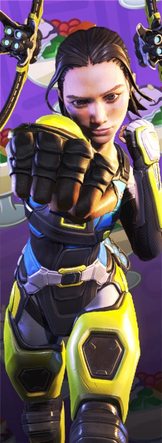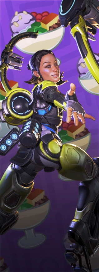 | “ | On her rebuilt homeworld of Nexus, Rowenna Valentina Coffey Divina chose joy, her ever-present smile offering hope amidst the rubble of a government coup. There, the remnants of a fallen Monarch Titan became a symbol of sacrifice, inspiring heroic tales of Legends that Rowenna spun for her siblings. Her sense of humor would be her family’s shield against the harshness of reality, and a secret weapon in Rowenna’s own quest to be an Apex Legend.