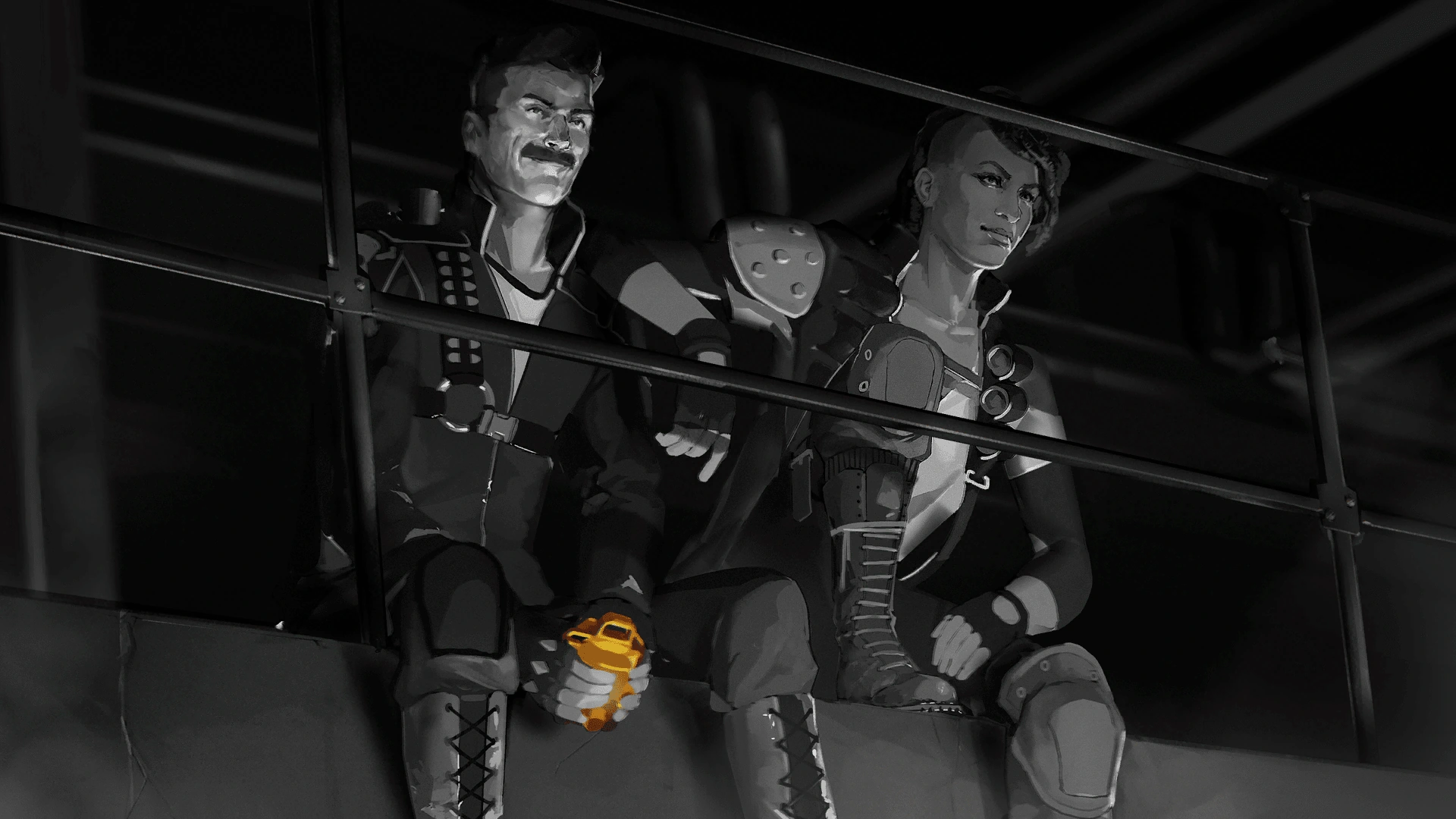 In 2734[6], Salvo became the seventh planet to join the Syndicate Alliance of Free Worlds, and Fitzroy was selected as the next Legend to join the Apex Games. This turn of events greatly angered Maggie, who opposed any future for Salvo aside from the independence they had. In a fit of rage, she pulled the pin on the pair’s grenade and flung it at Fitzroy, blowing off his right arm. He departed Salvo afterwards, replacing his lost limb with an upgraded prosthesis. [2]