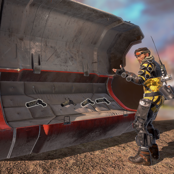 Legends are equipped with a Respawn Token, which allows them to respawn once per match with all their items if used manually while Bleeding Out, or automatically upon death. | |