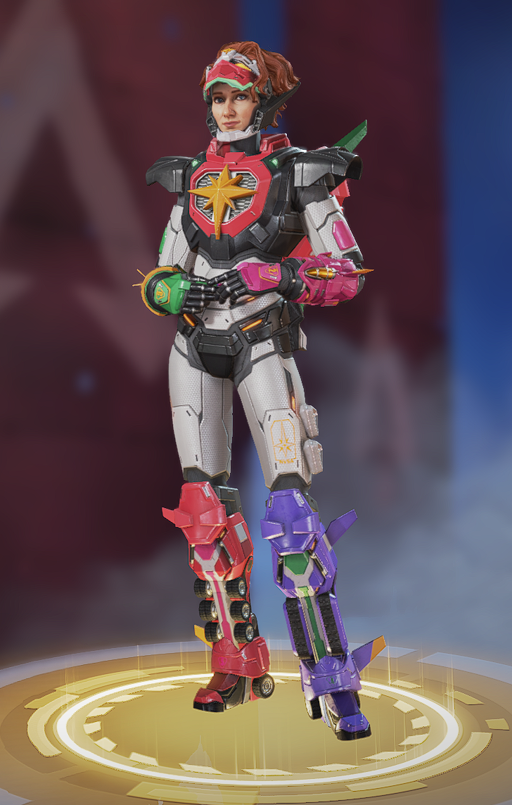 While some of the other Legends departed for Gaea, Somers stayed on Olympus to help mitigate the Medusa outbreak. As the epidemic continued and the Medusa vines spread, Olympus continued to suffer heavy structural damage, damaging equipment and troubling Somers, who didn’t wish to see her home destroyed even further. While conducting research with Wattson, she was approached by Ash, who forcefully requested structural engineers to secure a local Arenas site. Immediately after, an earthquake struck, causing the ceiling to cave in. Somers was saved by Ash, who pushed her away from the falling debris. Before leaving, Ash stated that Somers was doing great work in protecting Lilian Peck’s legacy, and that her son would be proud of her. Somers, confused and distressed at the mention of her son, wondered aloud how Ash knew about her son, with Wattson suggesting the inscription on Pathfinder’s newly constructed statue.[7]