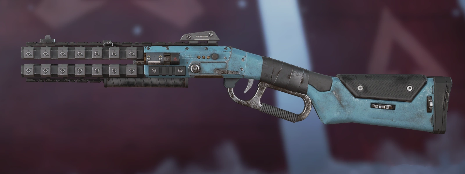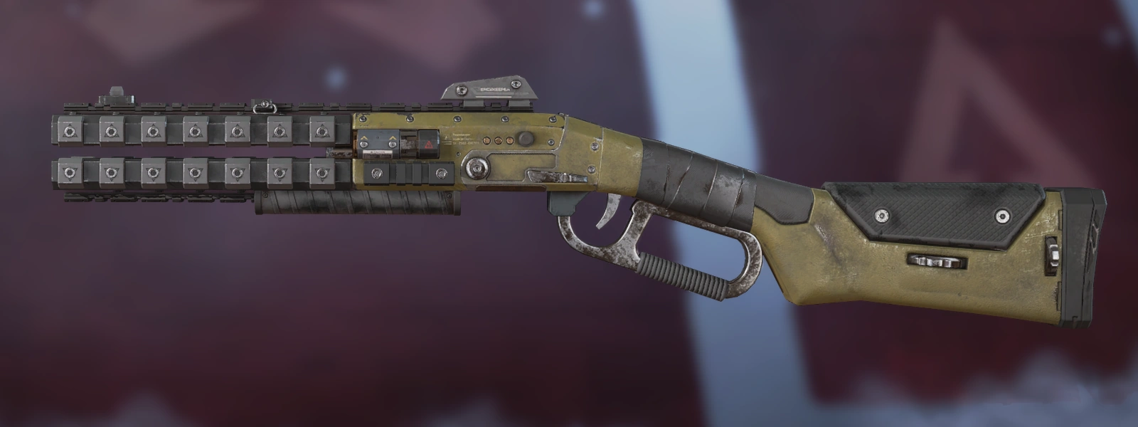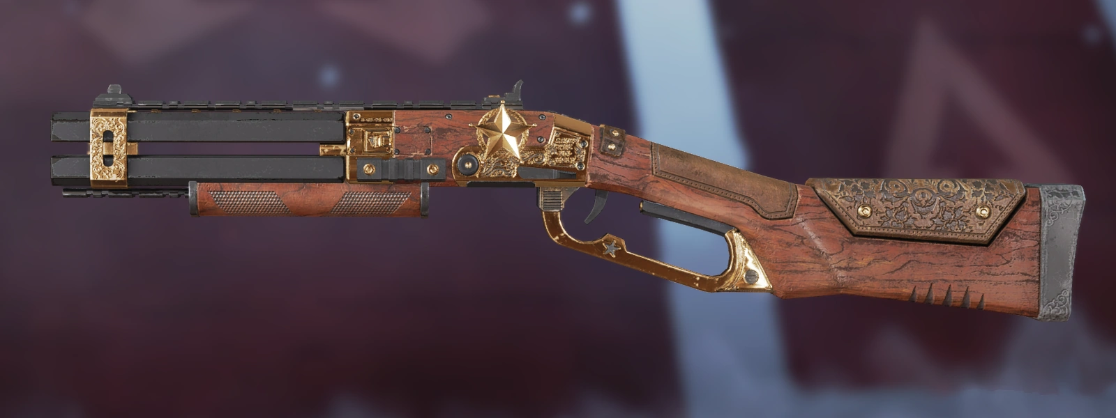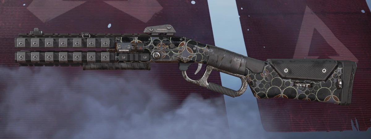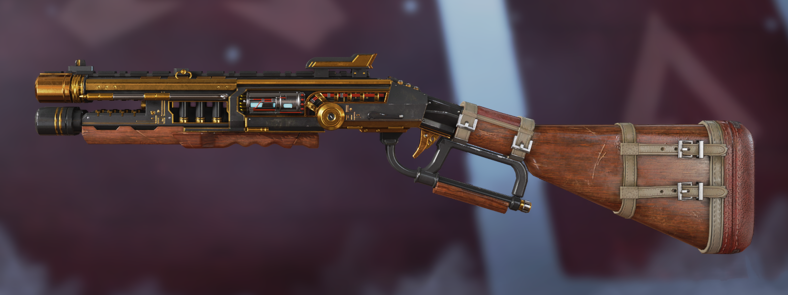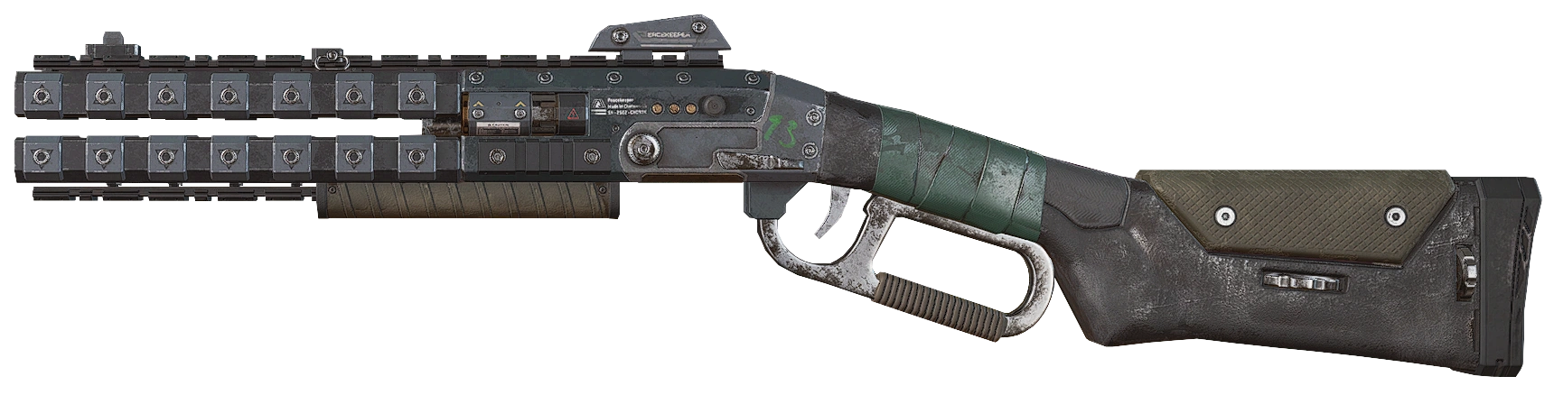 The Peacekeeper is a lever-action energy shotgun that utilizes Shotgun Shells. It fires 9 pellets in the shape of a shield, with one pellet in the middle and two on each outer line of the star shape. When
