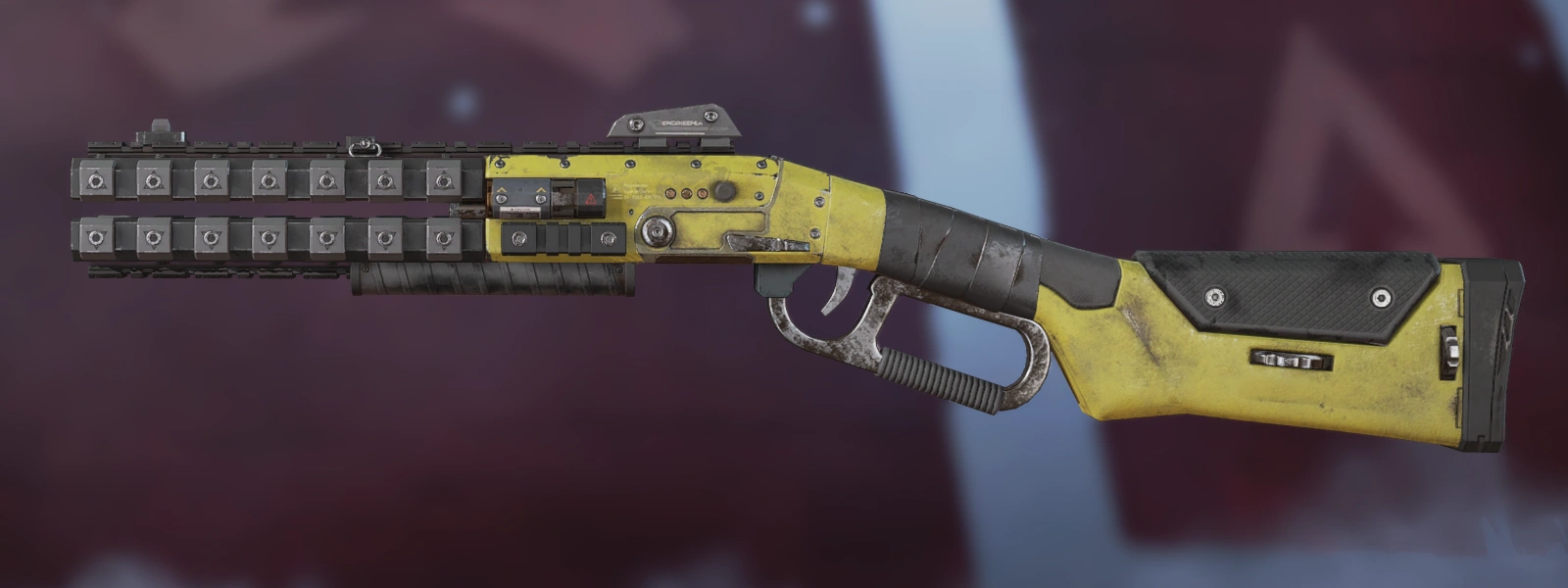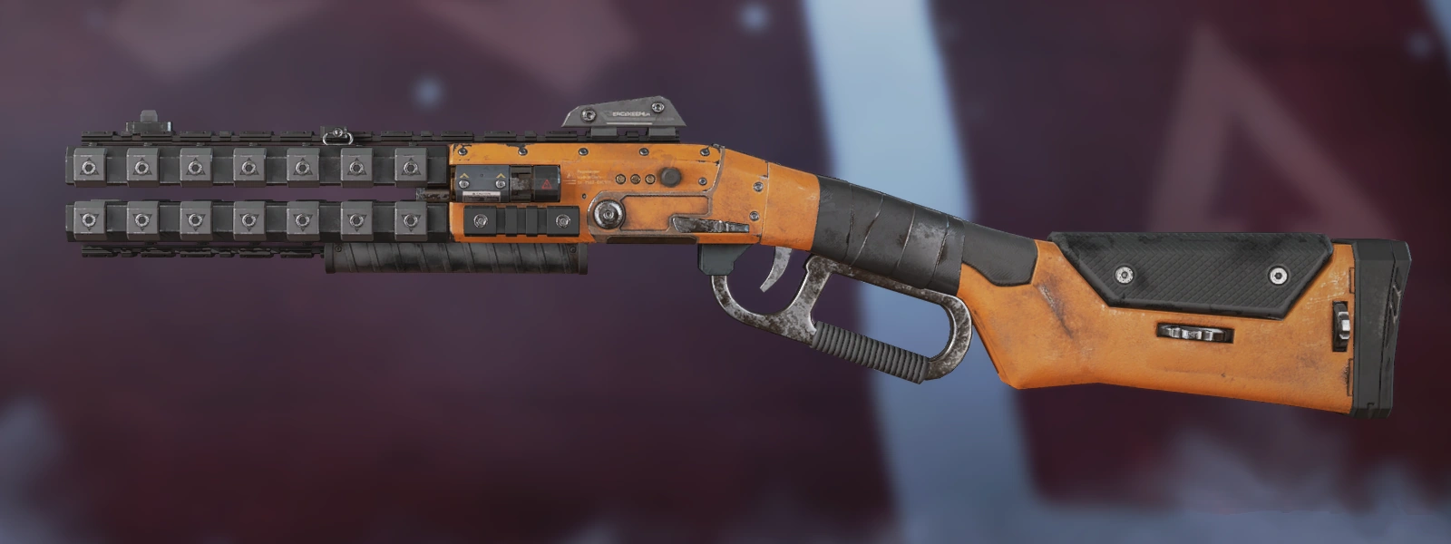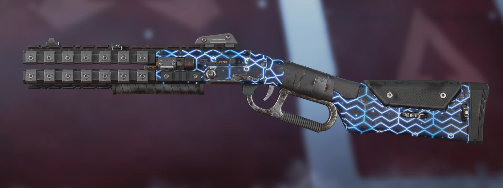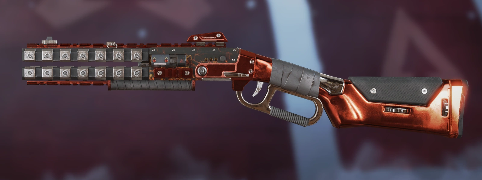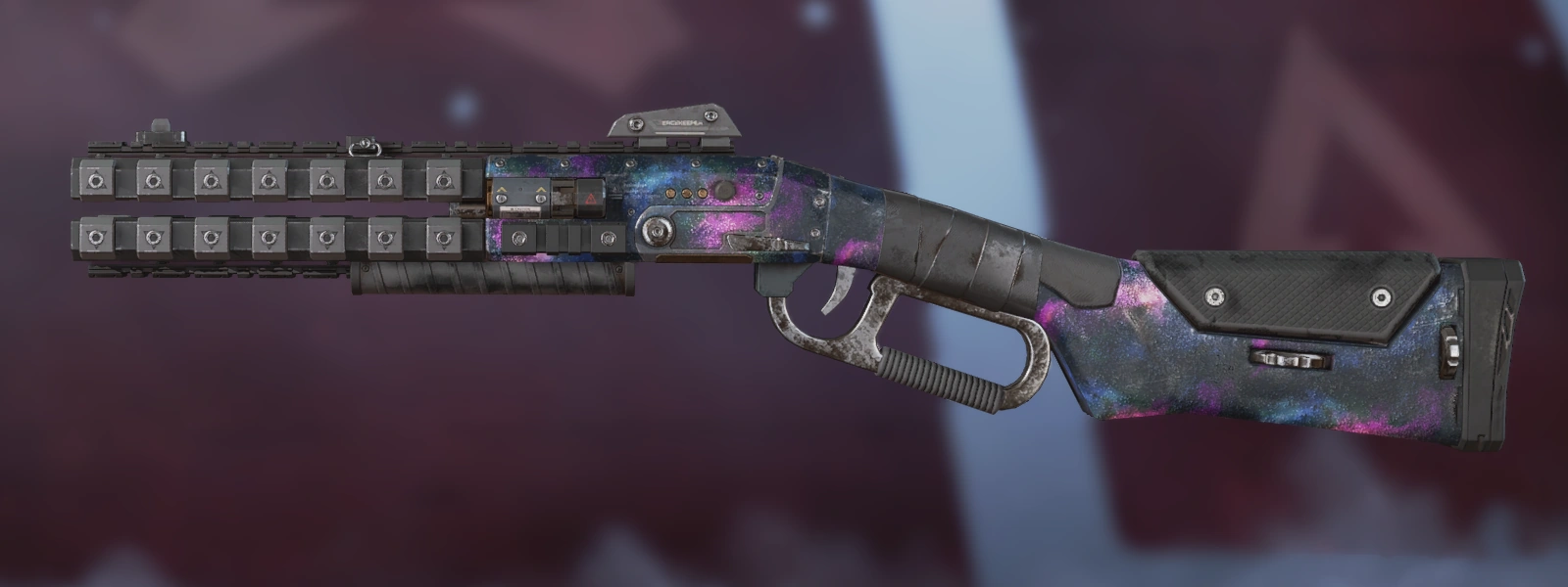 The Peacekeeper is a lever-action energy shotgun that utilizes Shotgun Shells. It fires 9 pellets in the shape of a shield, with one pellet in the middle and two on each outer line of the star shape. When