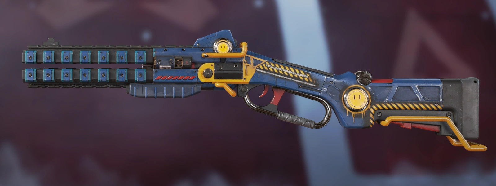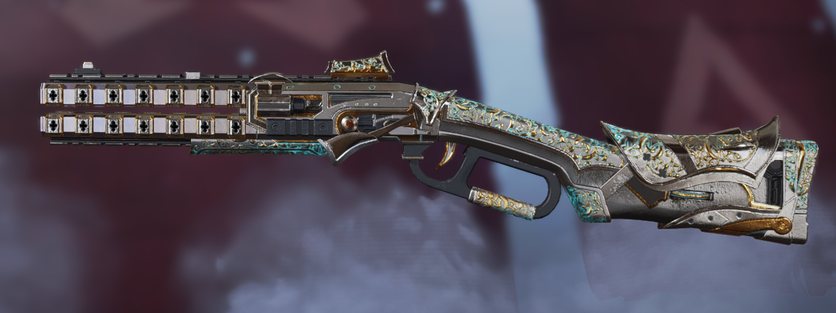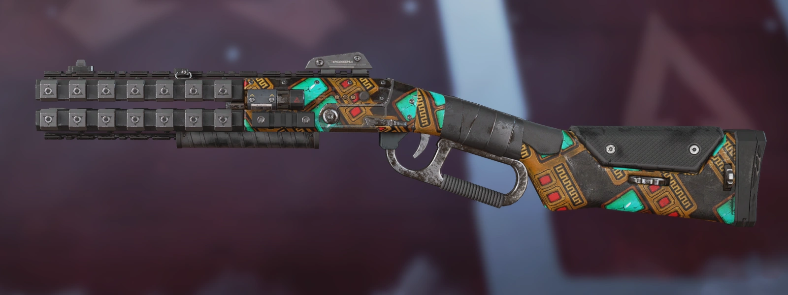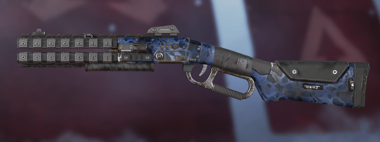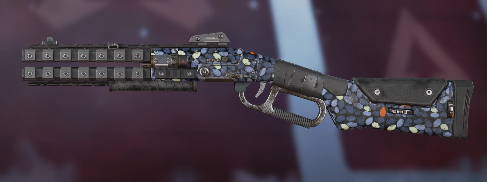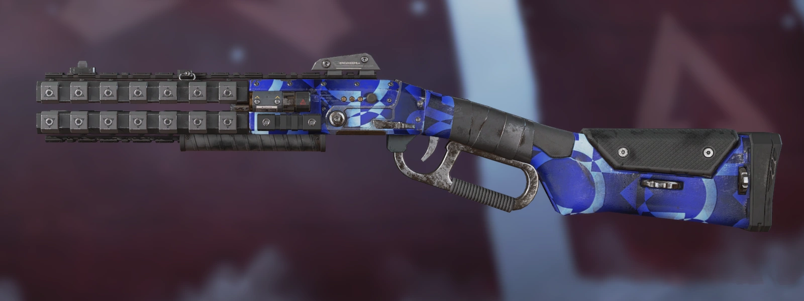 The Peacekeeper is a lever-action energy shotgun that utilizes Shotgun Shells. It fires 9 pellets in the shape of a shield, with one pellet in the middle and two on each outer line of the star shape. When