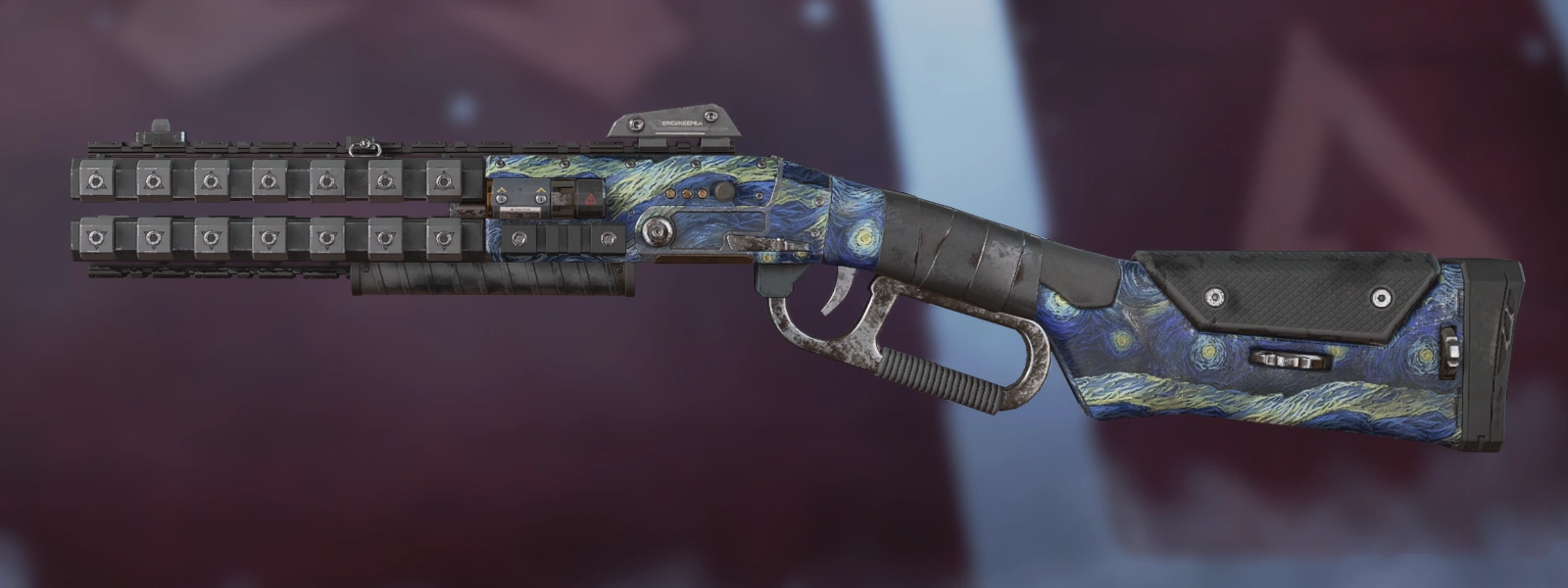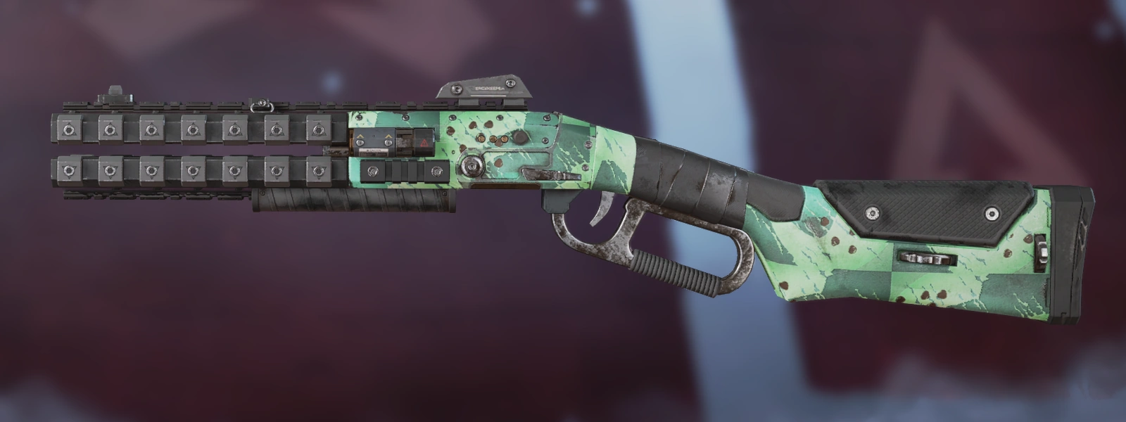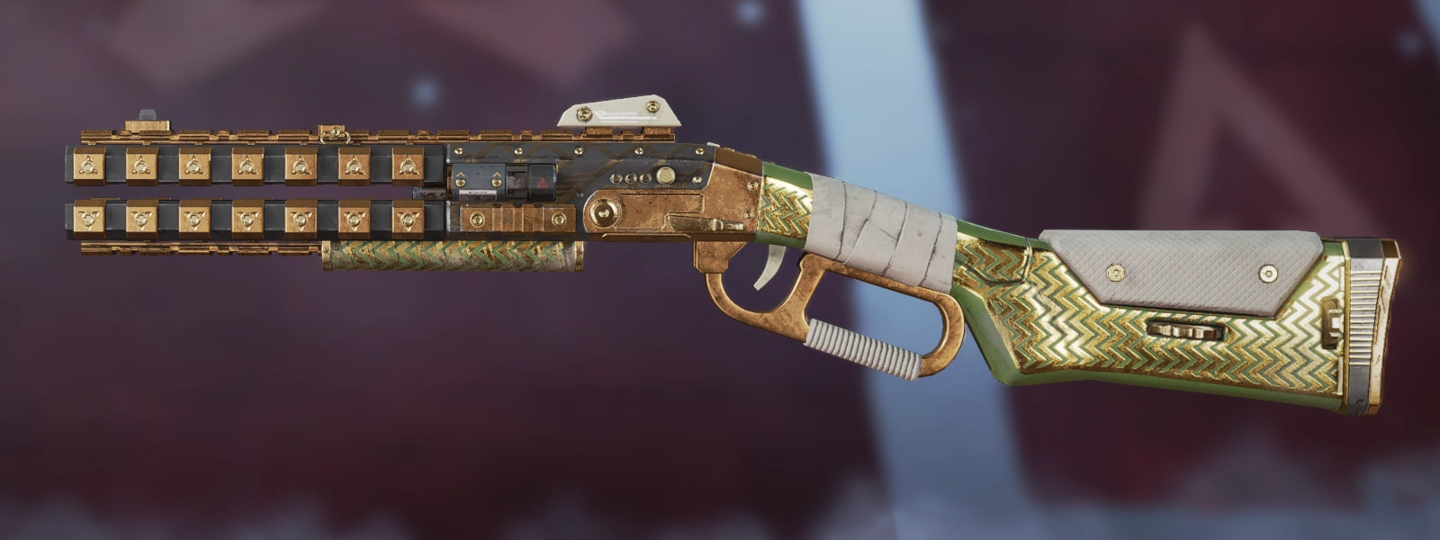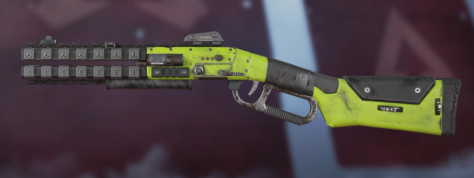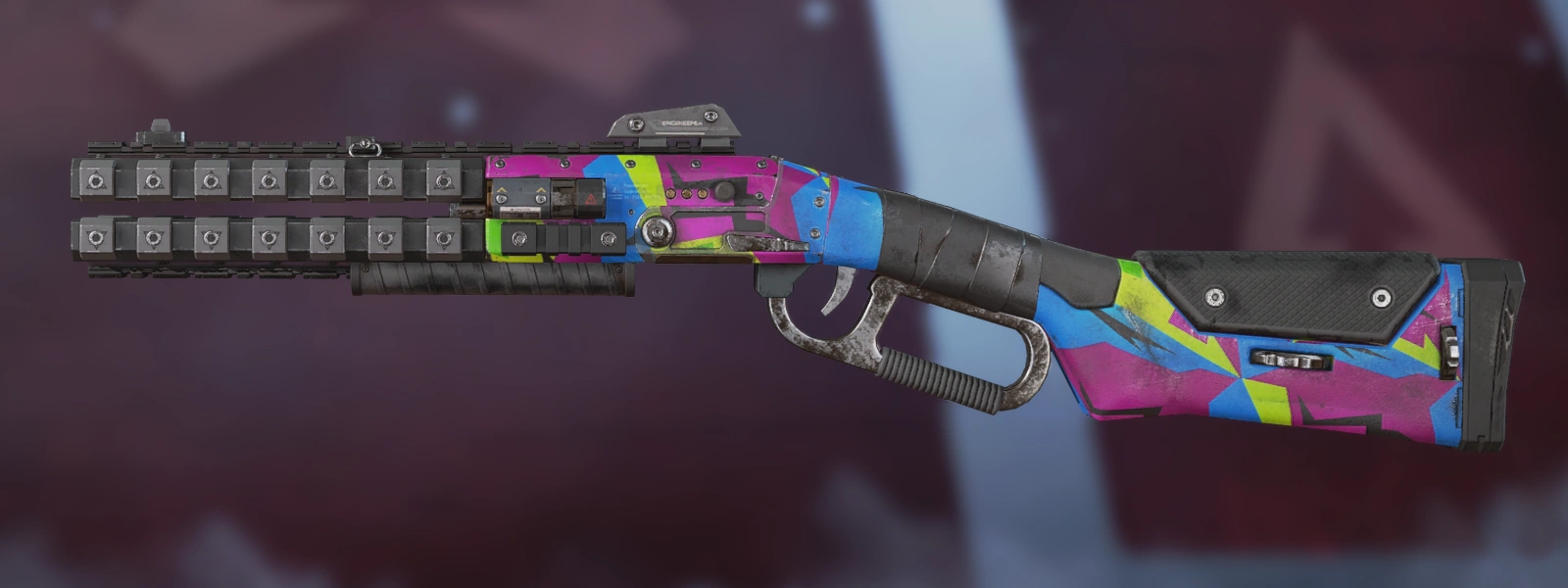 The Peacekeeper is a lever-action energy shotgun that utilizes Shotgun Shells. It fires 9 pellets in the shape of a shield, with one pellet in the middle and two on each outer line of the star shape. When