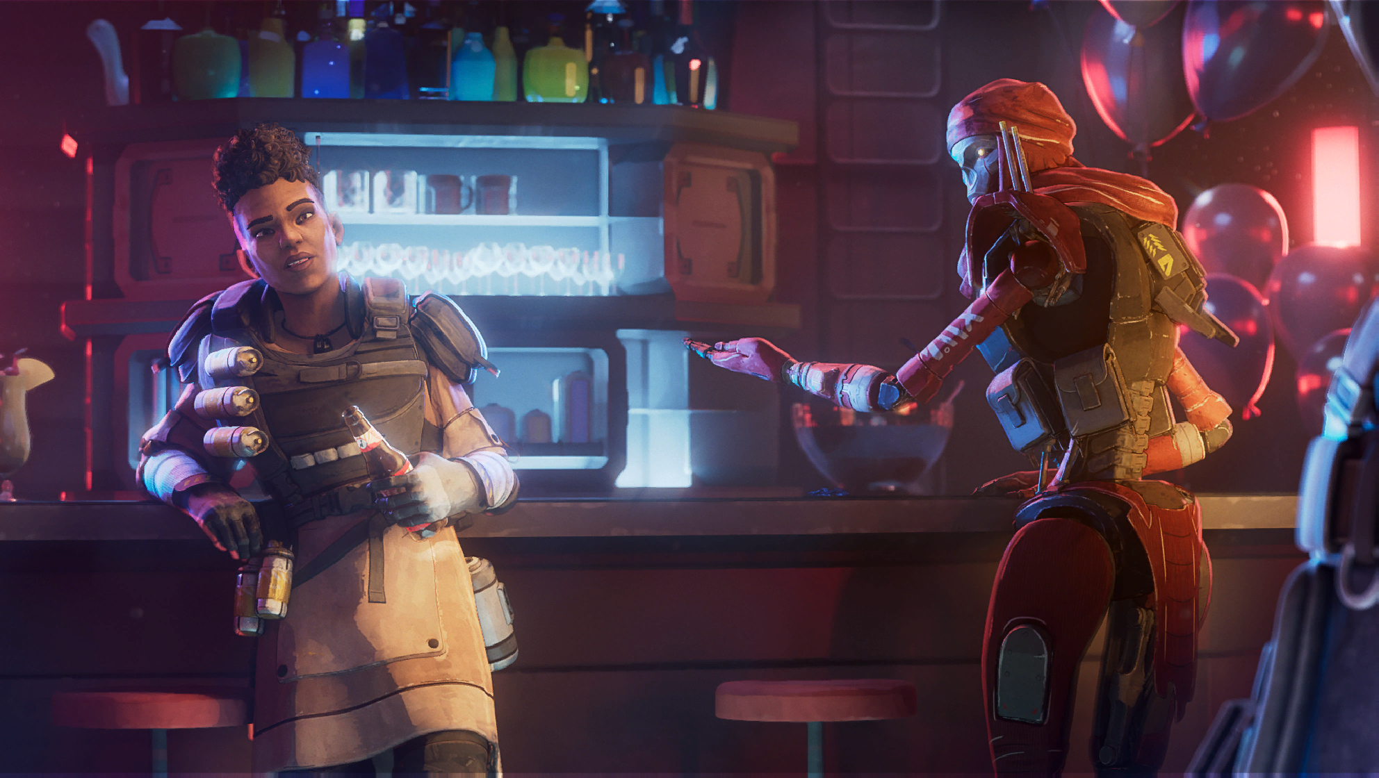 After the Legends stopped the Medusa epidemic on Olympus, Loba was devastated to hear Bangalore say that the two are “just friends.” [26] Valkyrie, also seemingly vying for Loba’s attention, comforted her and offered to “catch [her] again.” Revenant, wanting to make good on his promise to make Loba suffer, mused over whether he would kill Bangalore or Valkyrie first. [27]