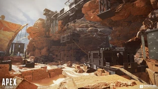 The Thunderdome was a fighting arena located on the southwestern coast of Kings Canyon. Constructed in 2703, it served as a popular form of entertainment and a good way for soldiers to blow off steam on the then-IMC-controlled island. The Thunderdome proved to be a very popular destination, with Mirage visiting often during his childhood[1] and Gibraltar holding a job as a concessions seller.[2] The most famous competitor at the Thunderdome was Kuben Blisk, who fought there until 2710, after which he departed to fight for the IMC in the Frontier War. August Brinkman was another early star of the Thunderdome, competing until his bombastic antics caused the death of Kit Siang Phua in 2718.